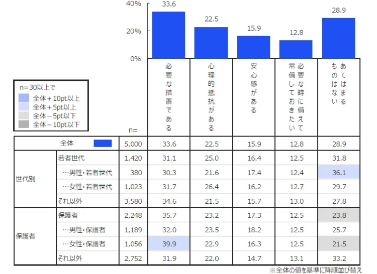 さらに、薬局での面前服用については、若者世代の女性の回答では「必要な措置である」(31.7%)が最も多かったものの、「心理的な抵抗がある」(26.4%)と感じる人も見られました。