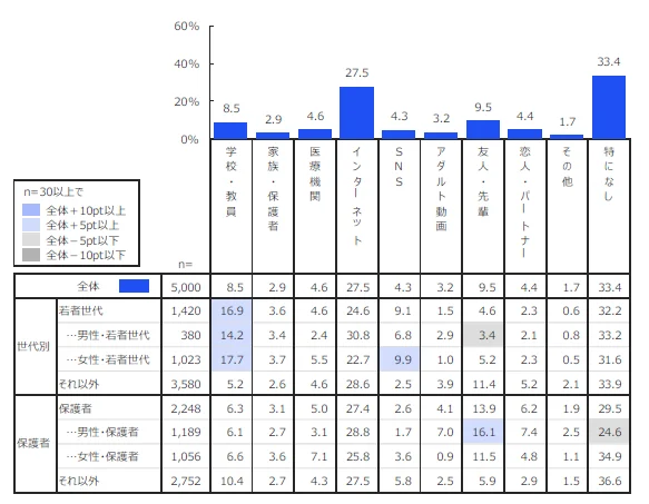 性の情報は「インターネット」が中心、相談先の少なさも課題