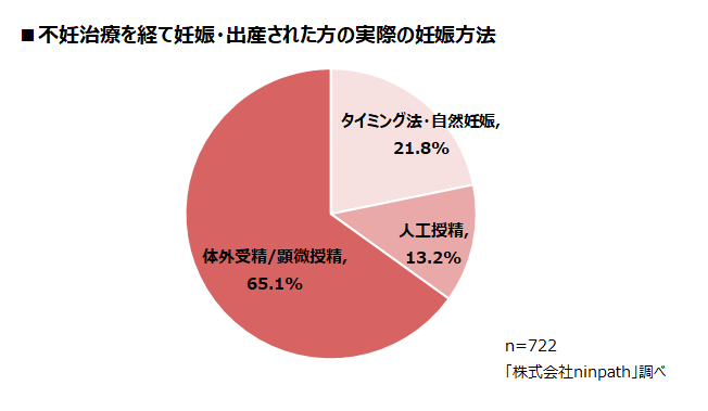 不妊治療の妊娠方法の内訳は、「一般不妊治療」がおよそ3割
