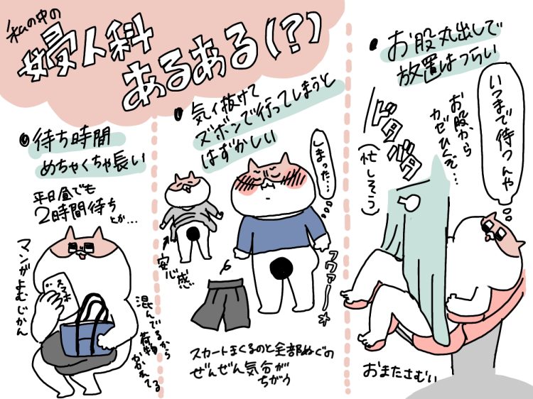 「生理重めちゃん」と自称するほど、さまざまな婦人科を受診した経験のあるせるこさんの連載コラムで、婦人科あるあるを描いていただきました。「お股丸出しのまま時間が過ぎていくシュールな空間なに??」にたくさんの共感が集まりました。せるこさんは、それでも婦人科には「めげずに行こうね!」とエールを贈ってくれています。