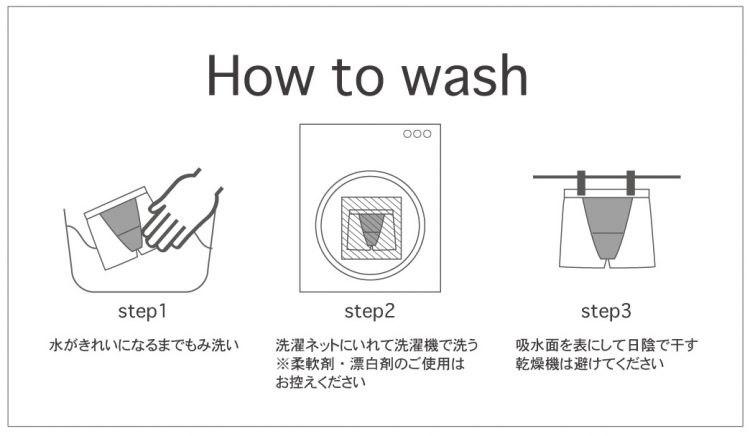 - 吸水面を表にして日陰で干す ※乾燥機の使用は避ける