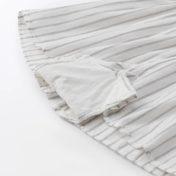 カラーは、オフ白ストライプ、イエローストライプ、ピンクストライプ、サックスブルーストライプの4色です。
