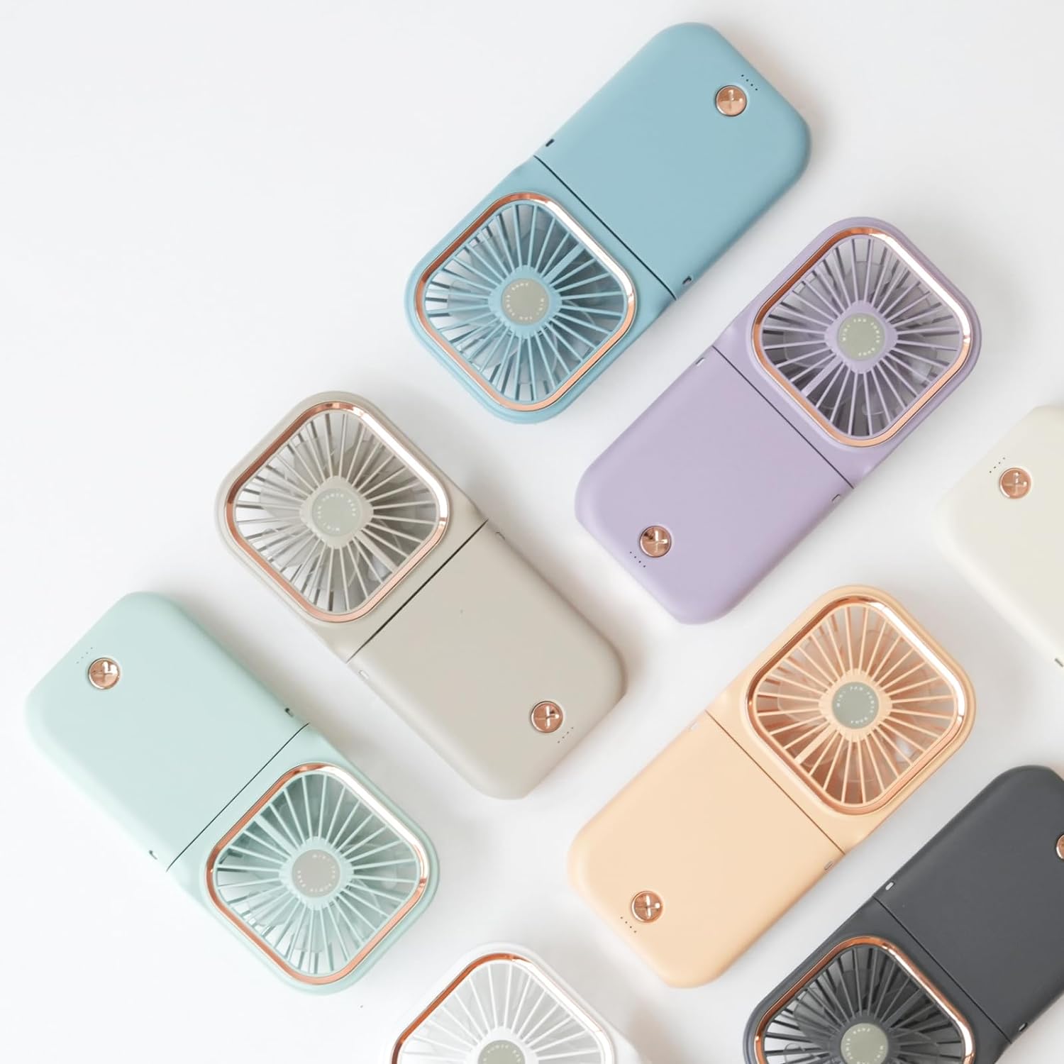風量は3段階の調整が可能で、最大6時間駆動。手持ちの扇風機としてはもちろん、二つ折りにして卓上扇風機としても利用できるうえ、スマホスタンドも兼ねる、使い勝手の良さ、そして豊富なカラーバリエーションが魅力です。