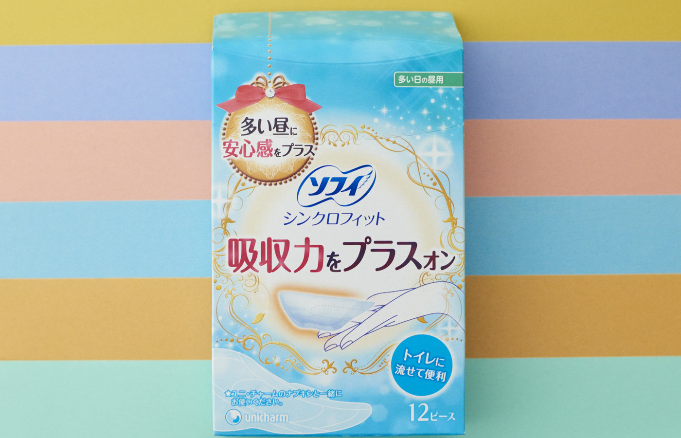 シンクロフィットは膣口に直接おしあてて使うことによって約2時間の吸水力を+してくれる生理用品。お風呂上がりにすぐ挟んでおけば、安心できるかも。